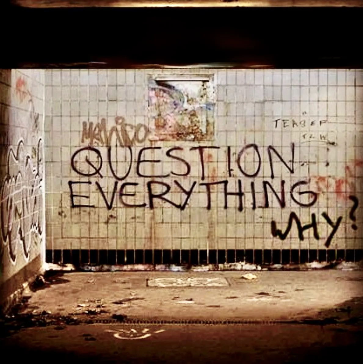 “Question everything,” it says on the wall. This is not just graffiti; it’s a call to reclaim that childlike wonder. It’s an invitation to return to the innocence of a three-year-old who has the courage to ask “why?” about everything — fearlessly, endlessly, and joyfully. And then the second word appears like a challenge: “Why?”